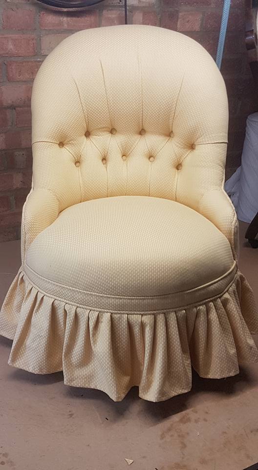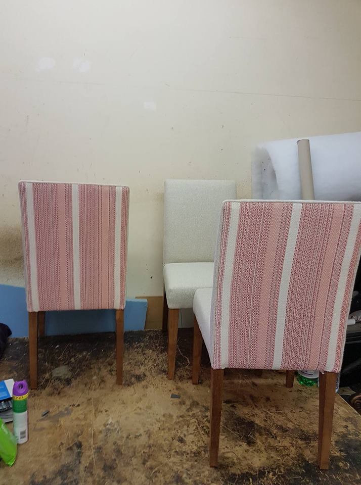 Here is just a few of our recent items we have done for various customers. we can accommodate any requirements, from deep buttoned chesterfields to repairs and recovering dining chairs or loose covers for sofas and chairs. We have many, many more examples of our work, if you can't see an example of what you require, feel free to contact us and we will do our best to send you an example of it so you can see just how much we pride ourselves in providing the best results for you. You name it we can do it!!!